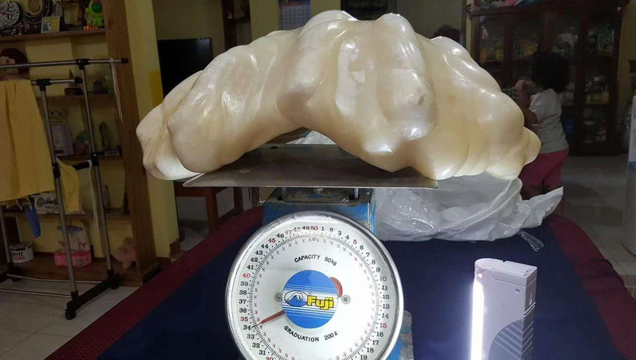 É muito difícil um troço desse tamanho se formar. Isso porque a pérola, na verdade, não passa de um sistema de defesa das ostras e de outros moluscos com conchas. Quando um parasita ou outro corpo estranho entra na ostra, ela começa a secretar uma espécie de fluído protetor em torno do invasor. Como o fluído é rico em calcário, acaba endurecendo e formando uma “pedrinha”: a pérola. E olha, as chances de encontrar uma dessas são mínimas: estima-se que apenas uma a cada 10 mil ostras tem pérolas. O pescador de Palawan, sem saber, tirou a sorte grande em sua jangada, há 10 anos.
