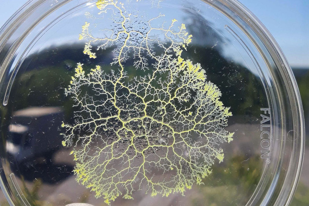 Na verdade, o lance é que o polycephalum é uma célula gigante, que se ramifica em uma rede de tubos macroscópica com centímetros ou até metros de comprimento. Dê uma olhada de novo na foto que abre este texto. Aquilo ali é um mofo do lodo em uma placa de Petri.