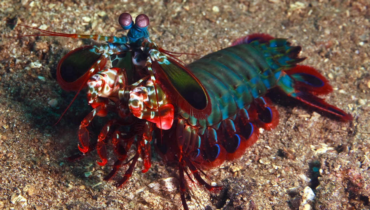 Mas antes, você precisa entender por que o estomatópode é tão especial – e a resposta está nas patas dianteiras. Em vez de garras, como as outras lagostas, o estomatópode tem duas patinhas que parecem luvas de boxe (por isso, ele também é conhecido como lagosta boxeadora). Essas “luvas” ficam escondidas sob a carapaça do animal, sempre prontas para atacar, como se fosse uma arma carregada. Aí, quando uma presa ou um predador se aproxima, o boxeador solta os apêndices com tanta força, mas tanta força, que a energia liberada pelo ataque faz a água ao redor ferver. Só para dar uma ideia, imagine que, se seres humanos conseguissem atirar uma bola de baseball para cima com essa mesma força, a bolinha iria parar no espaço e entraria em órbita. É muita força mesmo.