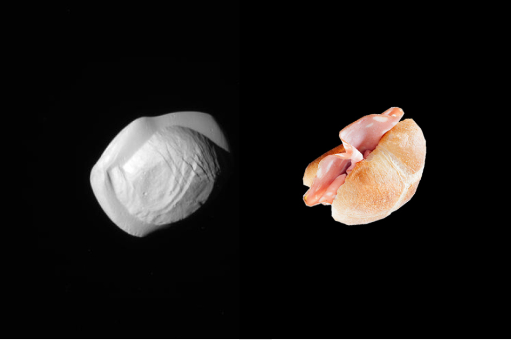 É um pássaro? É um avião? Não, é um pãozinho francês. Mais precisamente, um sanduíche de mortadela — feito de rocha e com 32 km de diâmetro. Por incrível que pareça, ele é uma lua, e brilha lá no céu… de Saturno. Pan, como é conhecida por astrônomos que não estão com fome, também já foi comparada a um capeletti, um bombom Amandita e este apetitoso ravioli redondo de cogumelos.