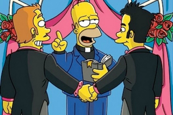 O seriado também já dedicou um capítulo inteiro à questão do casamento gay, quando a cidade de Springfield legaliza o casamento entre pessoas do mesmo sexo para tentar atrair mais turistas. E, de olho na oportunidade financeira, Homer é quem celebra a maior parte das uniões. É por tratar das questões homossexuais sem preconceito que o alemão acredita que os Simpsons ajudam as pessoas a se assumirem, assim como fez a personagem Patty. “Os Simpsons alcançam uma audiência de milhões de americanos, mas tem uma visão atípica, com mente aberta, imagens de gayse lésbicas. Apesar dos estereótipos, pode ser observada uma manipulação inteligente, justa e divertida sobre a homossexualidade”, escreve Panhuis, no livro Behind the Gay Laughter: Homosexuality in “The Simpsons”, fruto da pesquisa.