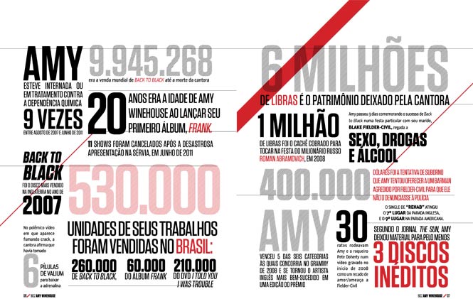 Semelhanças à parte, Amy Winhouse é incomparável como toda estrela deve ser. Por isso mesmo, a revista Bizz caprichou no tributo: em edição especial, foram reunidas fotos raras, curiosidades sobre a trajetória da artista, sua discografia, as mensagens por trás de suas letras e o labirinto de polêmicas a que foi associada.