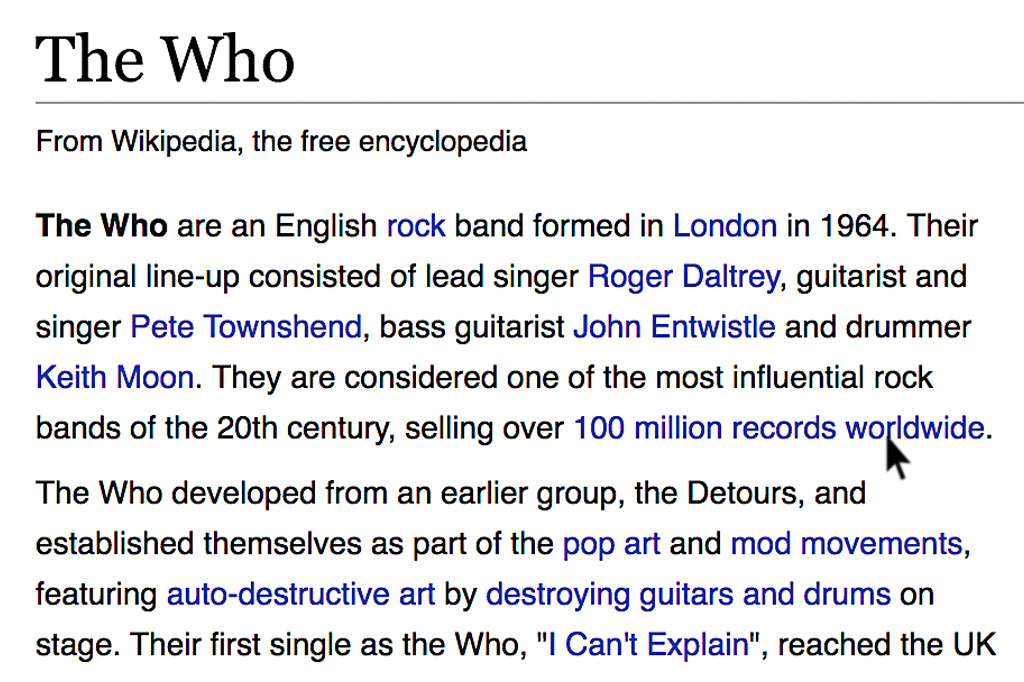 Tim Berners-Lee, um dos pioneiros da World Wide Web, confessa que não se lembra bem do critério de escolha. Ele até preferia verde, mas diz que o azul foi eleito provavelmente por ser a cor mais escura possível que ainda contrastava com o preto – de maneira a diferenciar os hiperlinks do texto comum.