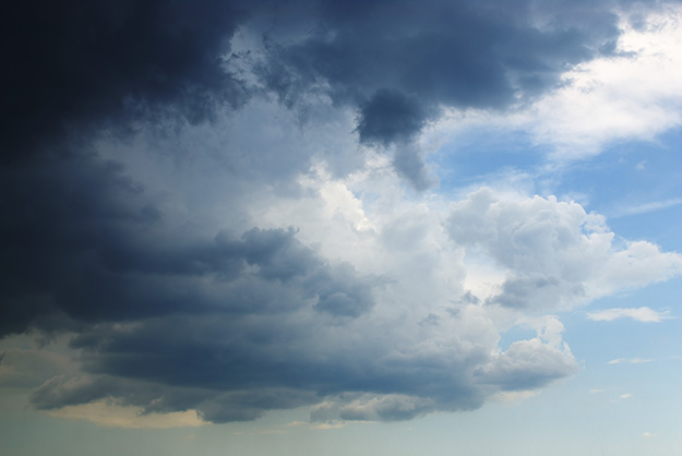 Em uma tempestade, as gotas são mais numerosas e espessas. Assim, a luz do sol não passa e a nuvem fica escura. Mas isso depende da posição do Sol e de quem está observando. Por isso, é possível ver uma mesma nuvem com partes claras e escuras.