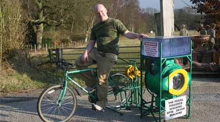 Que tal lavar a sua roupa de um jeito mais ecológico e, de quebra, entrar em forma? A sugestão é do ciclista inglês Alex Gadsden, que, apaixonado por bicicletas, projetou a Cyclean Machine, uma máquina de lavar roupas, ligada a uma magrela estática, que funciona a base de pedaladas.