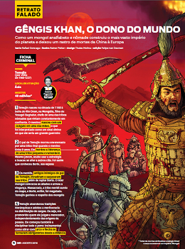A matéria que eu mais gostei de fazer (ou sugerir): É um empate, sem sombra de dúvidas, entre uma das minhas últimas que sugeri e a única que eu fiz. A que eu sugeri é sobre o homem que (em minha concepção) é o mais maquiavélico da historia, não só por ter sido maquiavélico antes de o próprio Maquiavel nascer, mas também por ter sido um ótimo exemplo para a famosa frase “os fins justificam os meios”. Sim, estou falando do Retrato Falado de Gêngis Khan.