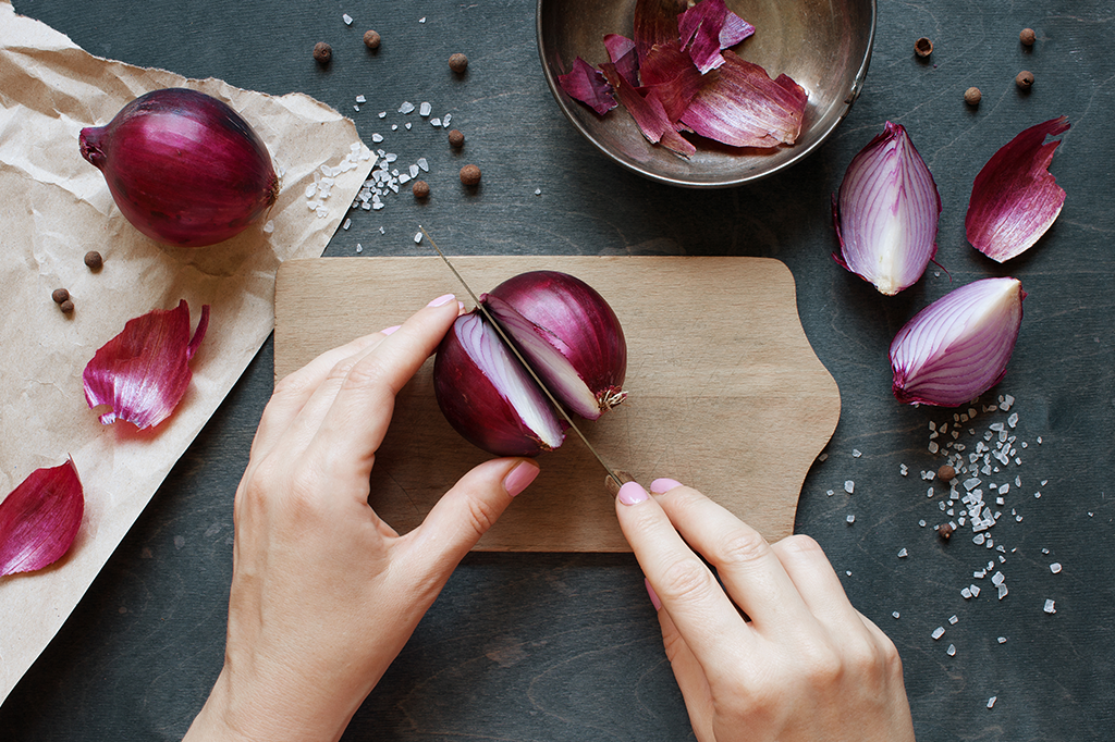 Quanto mais afiada for a faca, melhor. Lâminas serrilhadas ou mal afiadas amassam a cebola, liberando mais óxido sulfúrico