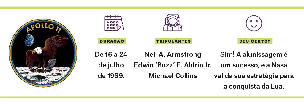 A missão, claro, começava muito antes da decolagem. Em 9 de janeiro de 1969, a Nasa anunciava formalmente a tripulação escalada: como comandante, Neil A. Armstrong; como piloto do módulo de comando, Michael Collins; e como piloto do módulo lunar, Edwin “Buzz” Aldrin. A escolha de Armstrong como comandante era sensata, mas o chefe dos astronautas Deke Slayton tinha dúvidas quanto ao temperamento de Aldrin, que havia criado problemas com alguns de seus colegas. Slayton chegou a propor a Armstrong que Aldrin fosse trocado por James Lovell, da Apollo 8, mas, após um dia de reflexão, o comandante decidiu ficar com Aldrin, com quem trabalhava bem, acreditando que Lovell merecia mais tarde ter seu próprio comando – o que de fato ocorreu, na Apollo 13.