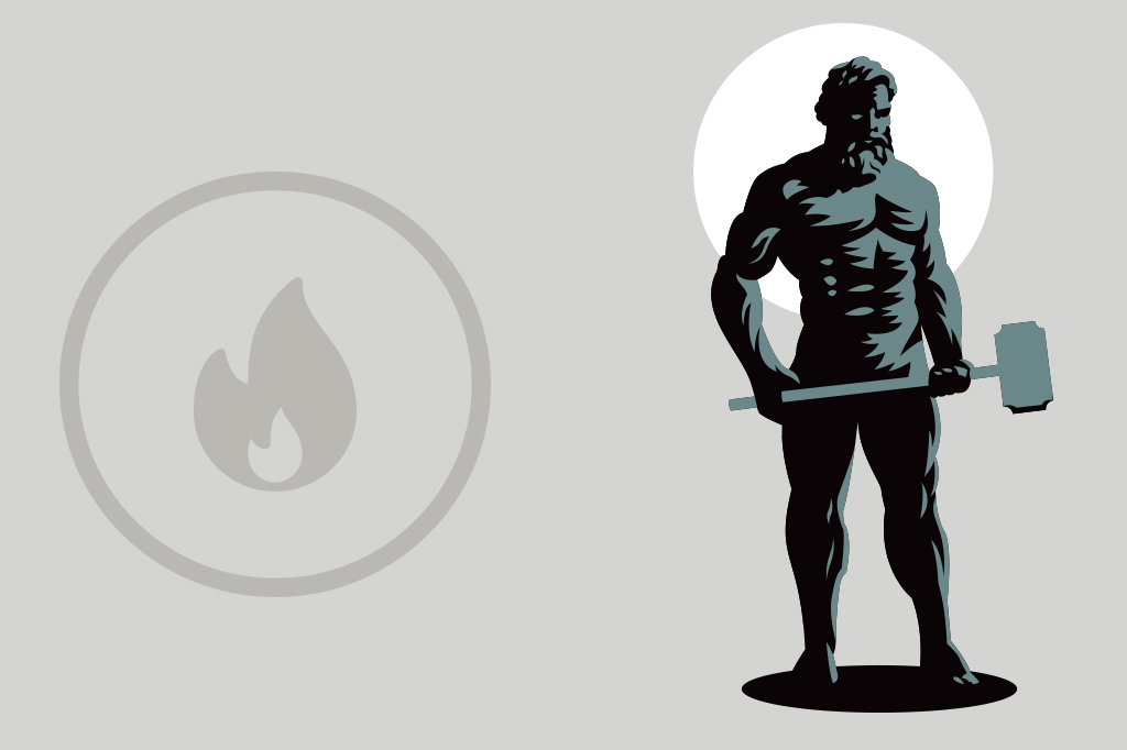 No Olimpo, Hefesto é reconhecido como deus do fogo, do ferro, do bronze, da prata, do ouro, de todos os materiais fundíveis. É ele quem constrói os palácios de mármore e ouro dos deuses. Em sua oficina, cria maravilhosos instrumentos, utensílios e armas – as jarras das quais vários reis tomam vinho, as correntes que prenderão Prometeu, as flechas de Apolo e de Ártemis, o escudo de Aquiles… Os ciclopes e outras criaturas monstruosas também passam a trabalhar sob suas ordens no interior de vulcões.