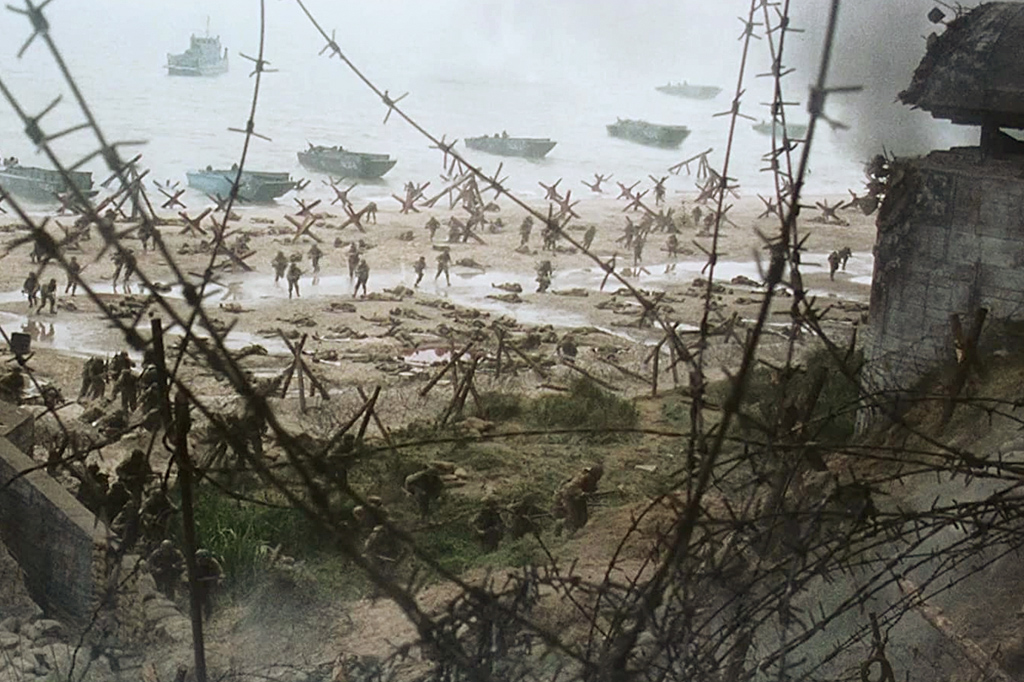 Esta batalha é o contexto da abertura visceral do filme de Steven Spielberg, que fez questão de apresentá-la em toda a sua brutalidade: mais de 4.400 Aliados perderam a vida naquela ação, fora outros 6.600 feridos. Uma carnificina. Em cena, jovens são estraçalhados por metralhadoras, membros voam pelos ares, o mar fica vermelho.