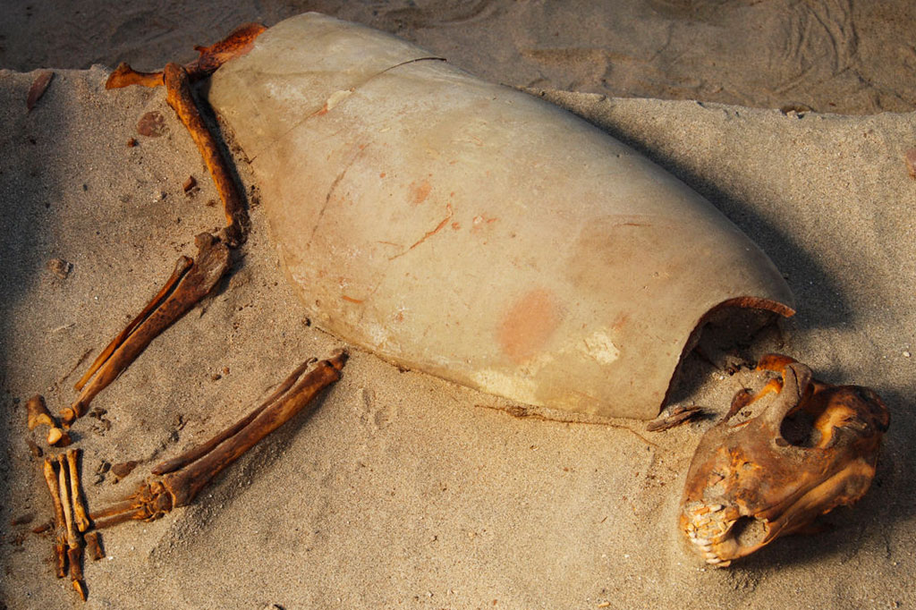 Esse sítio arqueológico foi descoberto em 2011, mas os pesquisadores ainda não sabiam ao certo o que havia no local. Após uma escavação detalhada, cientistas da Academia Polonesa de Ciências encontraram 585 esqueletos de cães, gatos e macacos enterrados em covas individuais. Alguns deles portavam acessórios ou estavam cobertos por tecidos ou cerâmica, em um formato que lembra um sarcófago. O cemitério foi usado entre os séculos dois e um antes de Cristo.