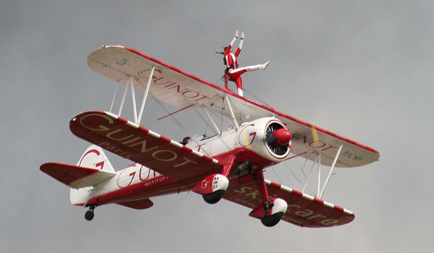 Por que é perigoso: o show vira suicídio sempre que alguém desrespeita a primeira lei do wing walking: “Nunca largue do que você está segurando até estar segurando em outra coisa”.