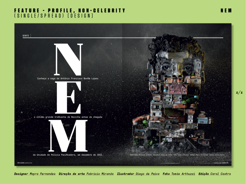 “Nem”, premiado pelo design de abertura de matéria. Uma escultura de Diego Paiva, fotografada por Tomás Arthuzzi e orquestrada por Mayra Fernandes, publicada na edição 361, de junho de 2016.