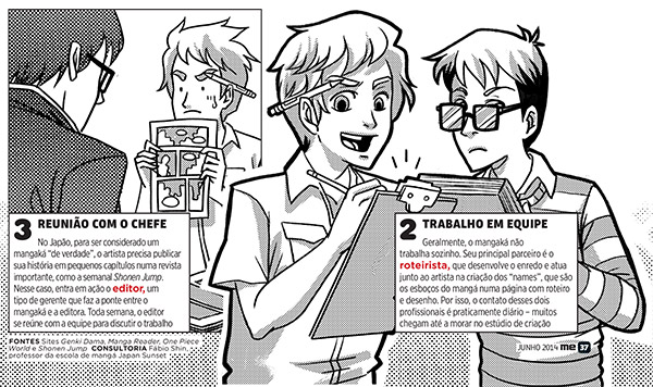 No Japão, para ser considerado um mangaká “de verdade”, o artista precisa publicar sua história em pequenos capítulos numa revista importante, como a semanal Shonen Jump. Nesse caso, entra em ação o editor, um tipo de gerente que faz a ponte entre o mangaká e a editora. Toda semana, o editor se reúne com a equipe para discutir o trabalho