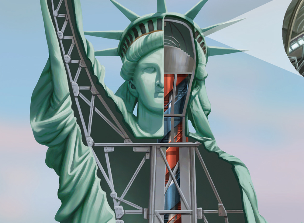Presente do governo francês aos EUA para celebrar a amizade entre os dois povos, a estátua foi construída em Paris, entre 1881 e 1884. a partir de um desenho do escultor Auguste Bartholdi. A parte interna foi feita nos EUA, com projeto do também francês Alexandre Gustave Eiffel (sim, o mesmo da Torre). Por lá, a montagem foi em 1886.