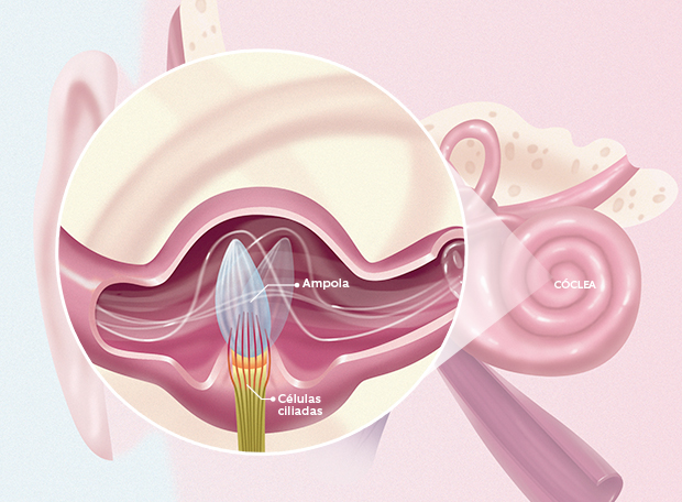 Ao girar em círculos, a inércia faz com que a endolinfa siga na contramão do movimento e arraste as células ciliadas,que ficam em uma estrutura chamada ampola. É a mesma reação da aceleração brusca de carro: você é jogado para trás quando ele vai para a frente