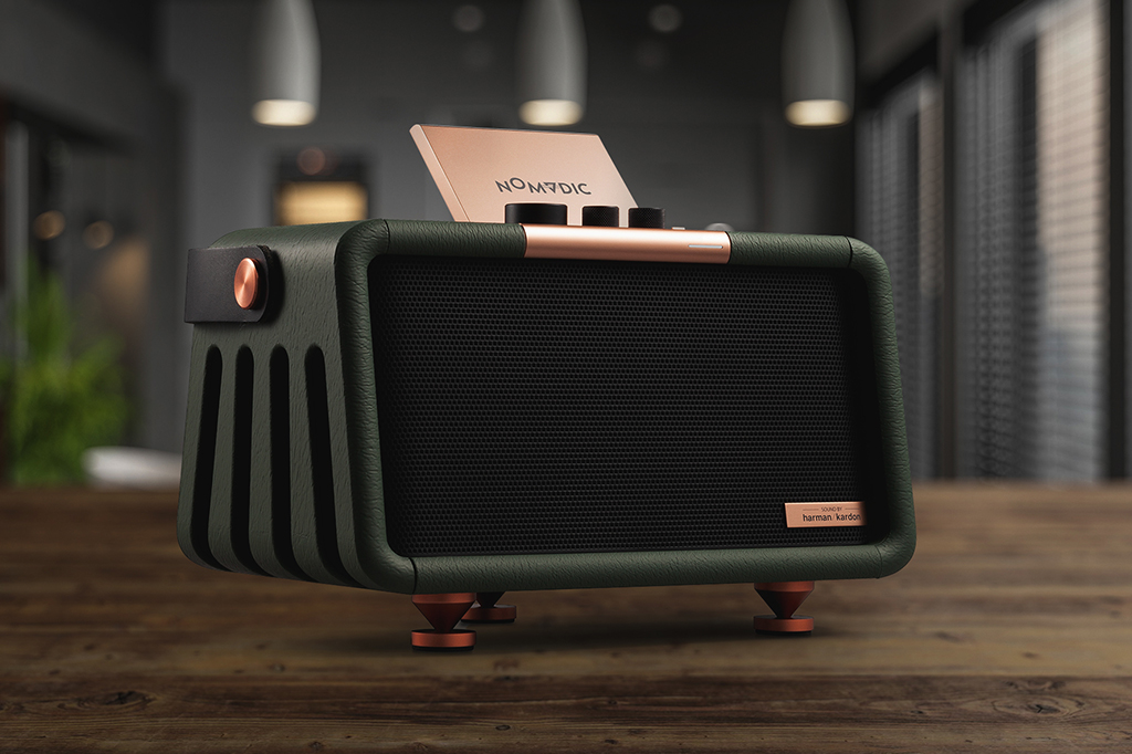 A Nomvdic x300 (pronuncia-se “nomadic”) parece só mais uma caixa de som Bluetooth. Mas tem embutido um projetor, que gera imagens de até 100 polegadas.