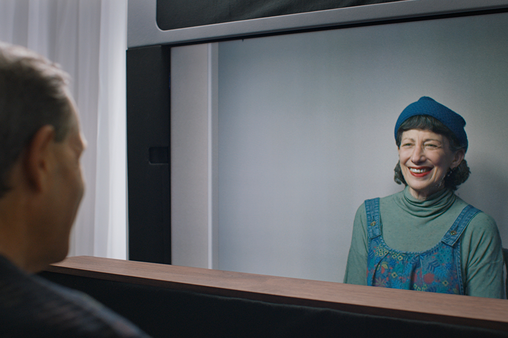 Ou seja, é um sistema de videoconferência extremamente sofisticado. A tela tem 65 polegadas, resolução 8K e uma tecnologia chamada light field display, que a torna capaz de exibir várias imagens ao mesmo tempo (é uma versão muito mais avançada da técnica usada na tela do console Nintendo 3DS). Conforme você se mexe na frente da tela, vê ângulos ligeiramente diferentes do rosto da outra pessoa – e é isso que dá a sensação de holograma.