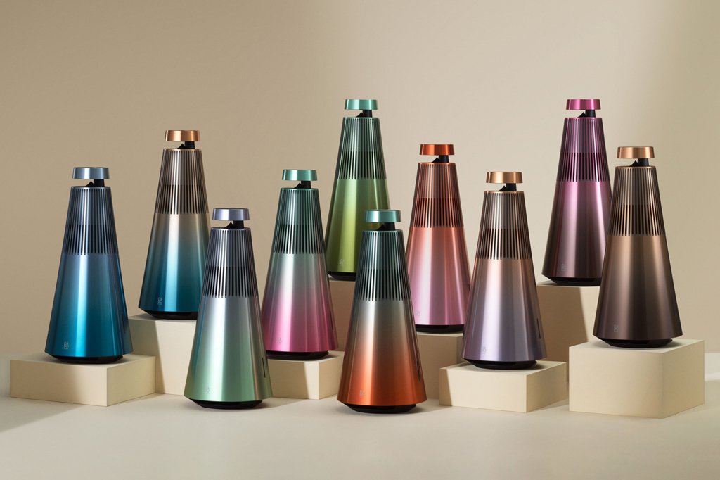Ela mede 43 cm de altura e tem um difusor acústico que dispara o som em todas as direções, ajudando a preencher o ambiente, bem como um sistema que analisa a acústica da sala e corrige digitalmente o som para compensá-la. Trata-se de uma edição limitada, disponível em dez cores, ainda mais cara do que a Beosound 2 tradicional: custa 5.300 euros.