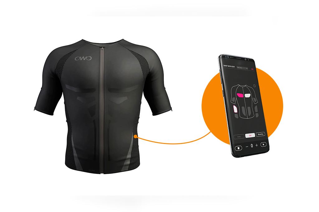 O OWO Vest (499 euros) tem dez atuadores internos, que prometem simular 30 sensações – como a de levar um tiro, esbarrar numa pessoa ou sentir o sopro do vento.