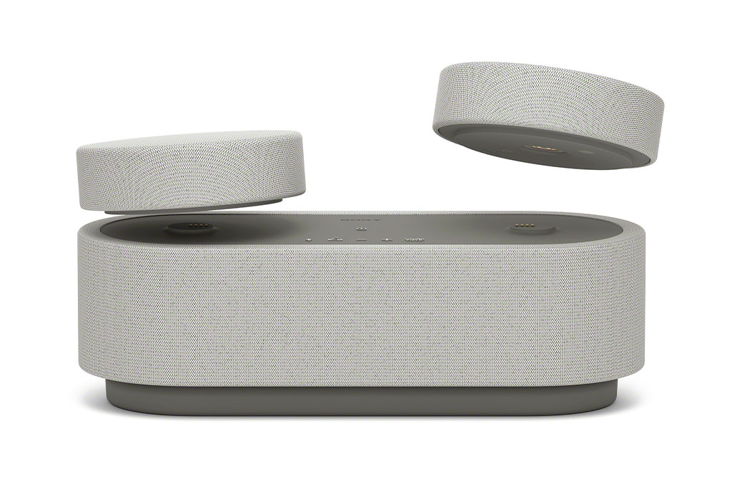 Na hora de ver o filme, você pega as caixinhas (que medem 12 x 4 cm e pesam 300 g cada) e põe nos cantos do sofá. Terminou? Basta recolocá-las sobre a soundbar, que carrega as baterias delas.